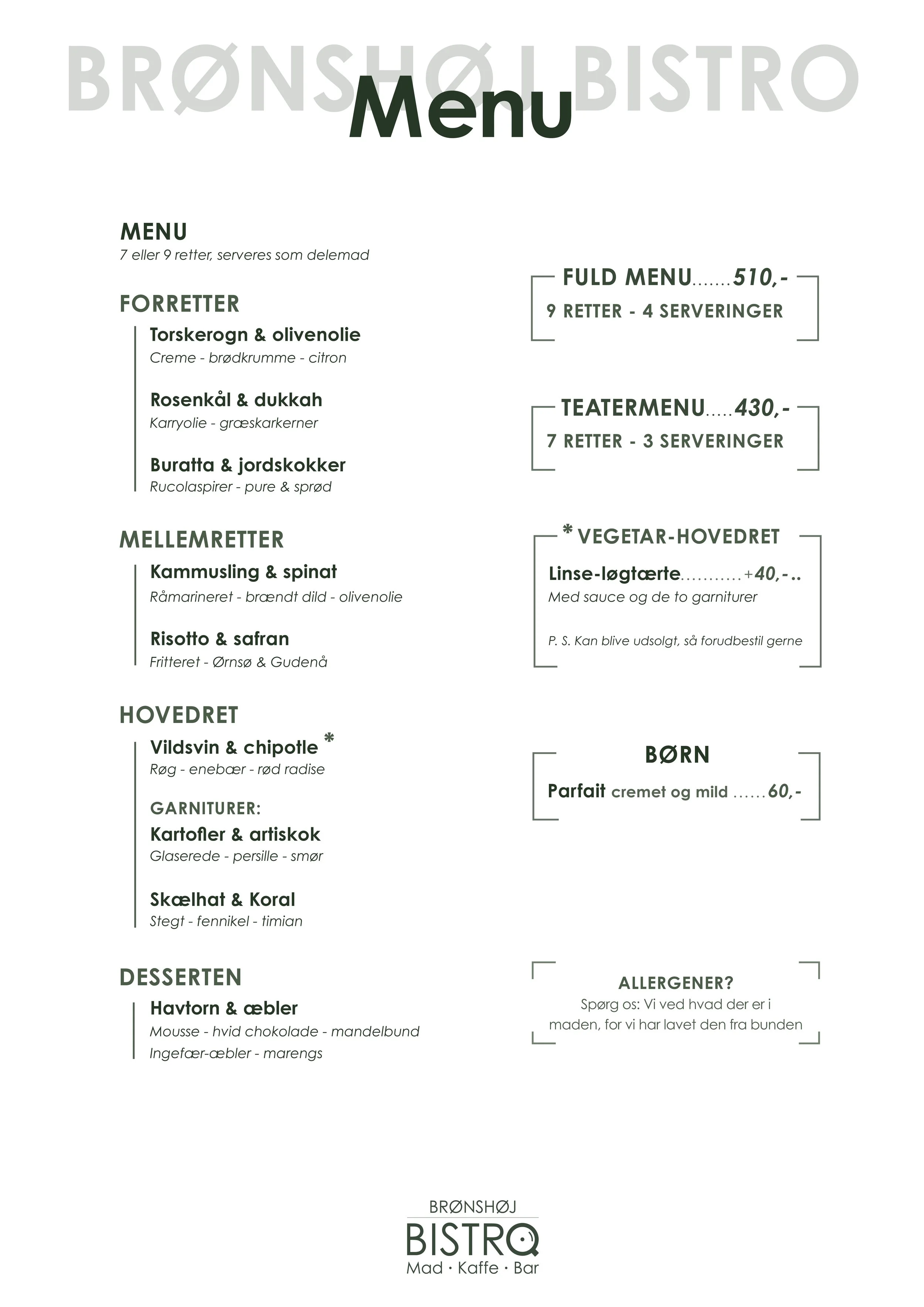 Der er plads til små og store selskaber i Bistroen og vi laver gerne et langbord til jer, hvis I er en større gruppe.