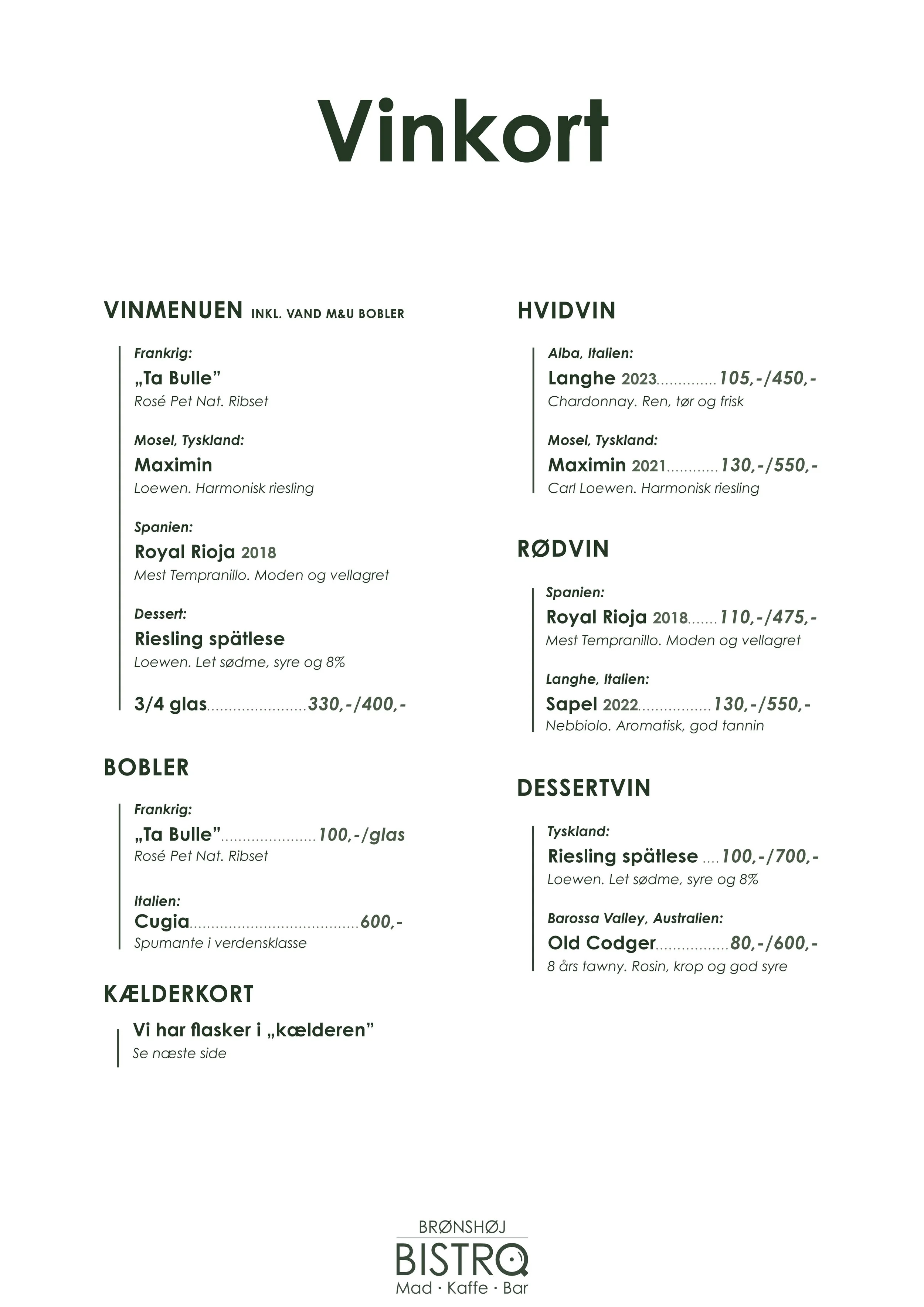 Menuerne er vores hjertebarn - både i vin og mad - delt med hele bordet.